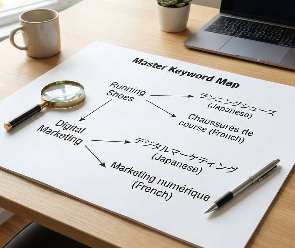 By mapping keywords before translating, you provide your linguists with a “Glossary of Intent,” ensuring that the final copy is optimized for search from the first draft.